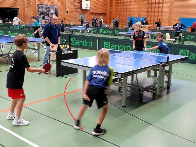 Vier Jungs aus Beinstein – Finn-Luca Holzhäuer, Ante Matic, Jonas Müller und Robin Kohl – waren hochmotiviert, aber mit unterschiedlichen Zielen. Für Jonas und Robin war es das erste große Turnier. Robin wurde in seiner Vierer-Gruppe Dritter mit einem Sieg und schied aus. Jonas spielte in seiner Fünfer-Gruppe sehr gut mit, dreimal siegte er, einmal verlor er und musste die Erfahrung machen, dass er trotzdem ausgeschieden war. Drei Spieler hatten die gleiche 3:1-Bilanz, aber Jonas die schlechteste Satzdifferenz. Das war sehr enttäuschend für ihn, hatte er doch bravourös gekämpft. Im Doppel schieden beide im Viertelfinale aus. Ante und Finn-Luca dagegen waren in der Lage vorne mitzuspielen. Hier gelang Ante die größte Überraschung der in seiner 5er-Gruppe den top gesetzten Ben Hofmann (SV Plüderhausen) bezwang und ungeschlagen in die K.o.-Runde einzog. Auch Finn-Luca erreichte diese trotz einer Niederlage gegen Lio Michler (TTV Burgstetten). Dadurch kam es nach erfolgreichem Achtel- und Viertelfinale zum direkten Aufeinandertreffen im Halbfinale, das Finn-Luca für sich entschied und auch im Finale gegen Laurin Knödler (TV Oppenweiler) triumphierte. Auch Ante gelang durch einen Erfolg im Spiel um Platz drei die ersehnte Urkunde und Medaille. Dass beide im Doppel gemeinsam den Titel des Bezirksmeisters errangen, machte ihren großen Erfolg noch größer und bekam viel Beifall, insbesondere von Jozef Sabo, dem Opa und Betreuer von Finn-Luca.